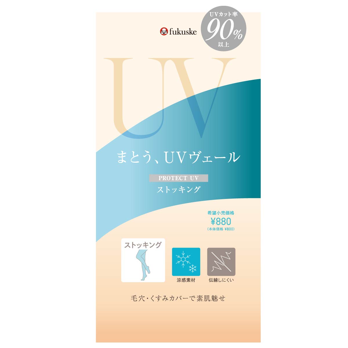 毎日の紫外線対策を、もっと手軽に。365日、絶え間なく降り注ぐ紫外線、日々忙しく過ごす中でも、紫外線対策をしたい。そんなあなたの生活に寄り添いながら、手間をかけずに肌を守る新感覚のUVケアブランドが誕生。「まとう、UVヴェール」東レ㈱の「クリアヴェール™」を使用。高透明・高発色ながらも紫外線遮蔽率が高いストッキングのような極薄生地でUV遮蔽率90%以上を実現。肌に密着することで、自然な見た目でファンデーションのように気になる毛穴・キズ・くすみをカバーしてくれます。涼感素材と遮熱機能で暑さと強い日差しの季節にピッタリです。抗菌防臭加工でエチケット対策にもおすすめ。
