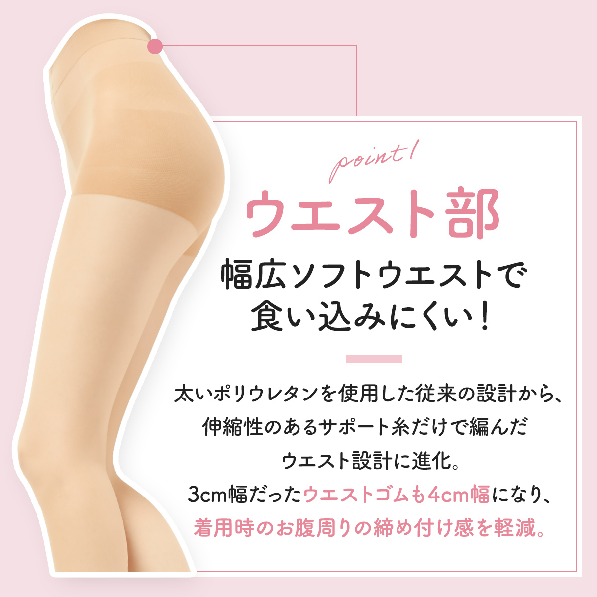 満足のノンランストッキングが8足組になって登場です。福助が誇る定番ブランド「満足」は圧倒的なはき心地がさらに進化しました。なめらかなはき心地を実現するため、満足のためだけに開発された独自のカバリング糸を使用。さらにウエストに食い込みにくい幅広ソフトウエストと腰回りをしっかり包みこむヒップサポート立体設計でお尻のホールド感もアップしたパンティストッキングです。