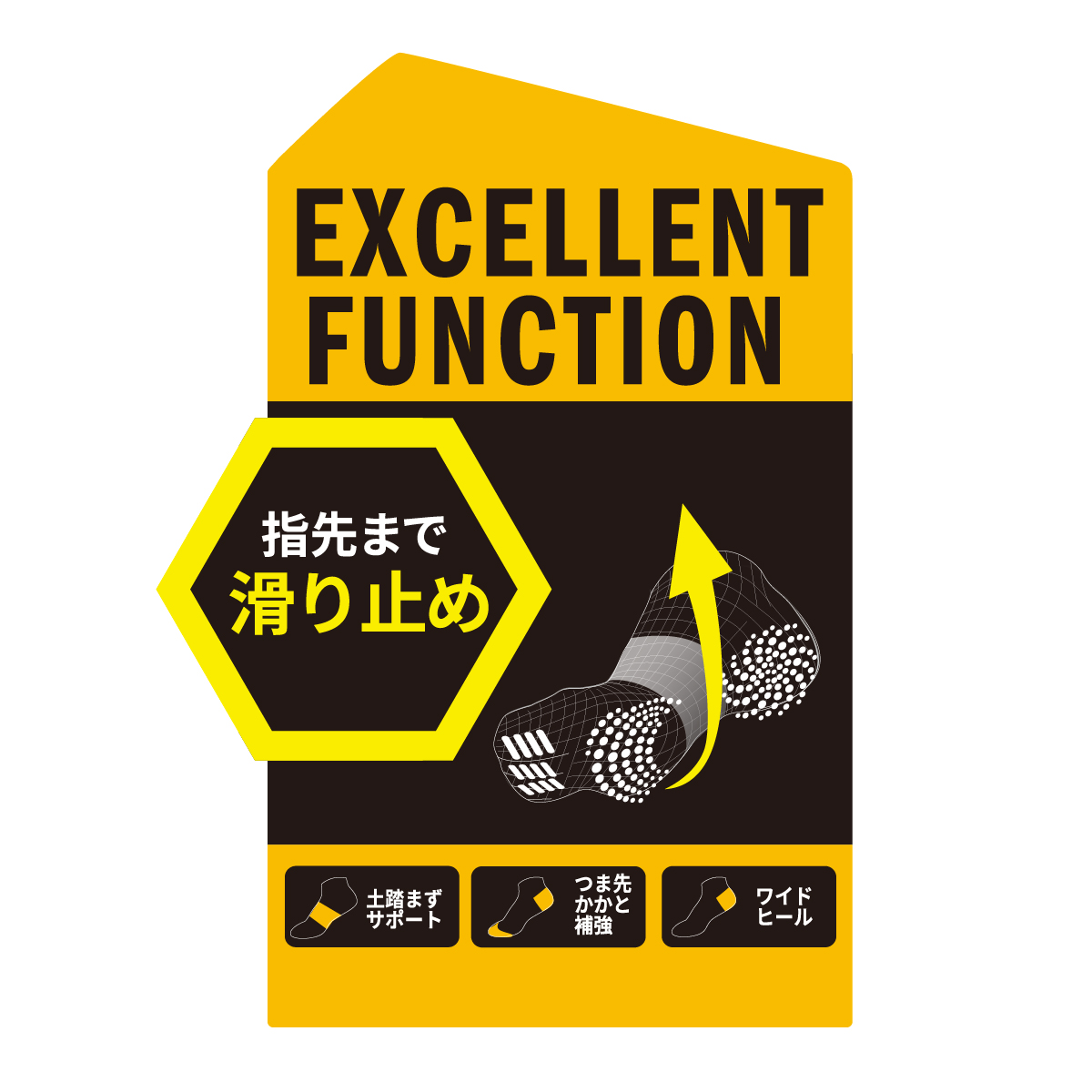 特徴・スニーカー丈 5本指・ワンポイント・足底滑り止め・消臭・つま先かかと補強・ワイドヒール