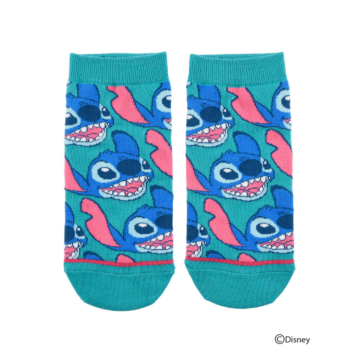 大人気ディズニーのリロ&スティッチのスニーカー丈ソックスです。ぎっしりとスティッチのフェイスが詰め込まれた総柄がポップで可愛い一足です。