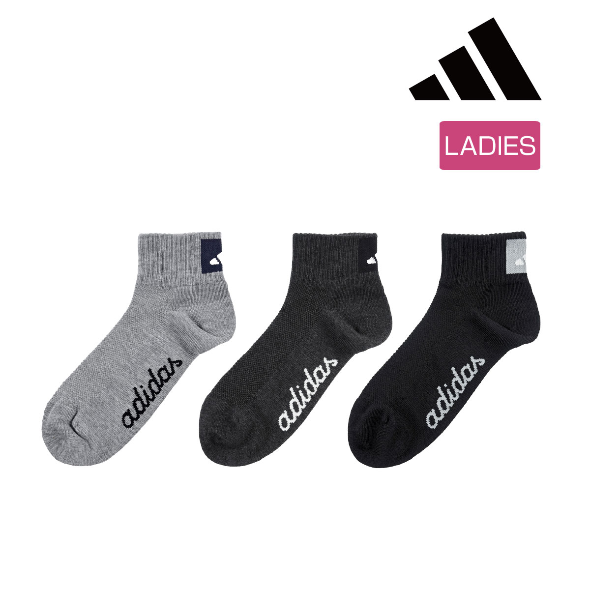 【adidas(アディダス)】3足組 靴下 ワンポイント リブ 転写プリント ショート丈 甲メッシュ 破れにくい 消臭(3134-07P)