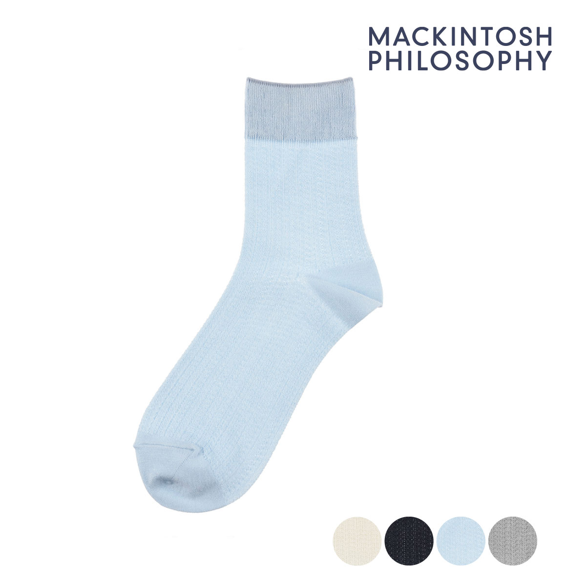 【MACKINTOSH PHILOSOPHY(マッキントッシュフィロソフィー)】 靴下 無地 鍵編み柄 クルー丈 レーヨンシルク (3107-419)