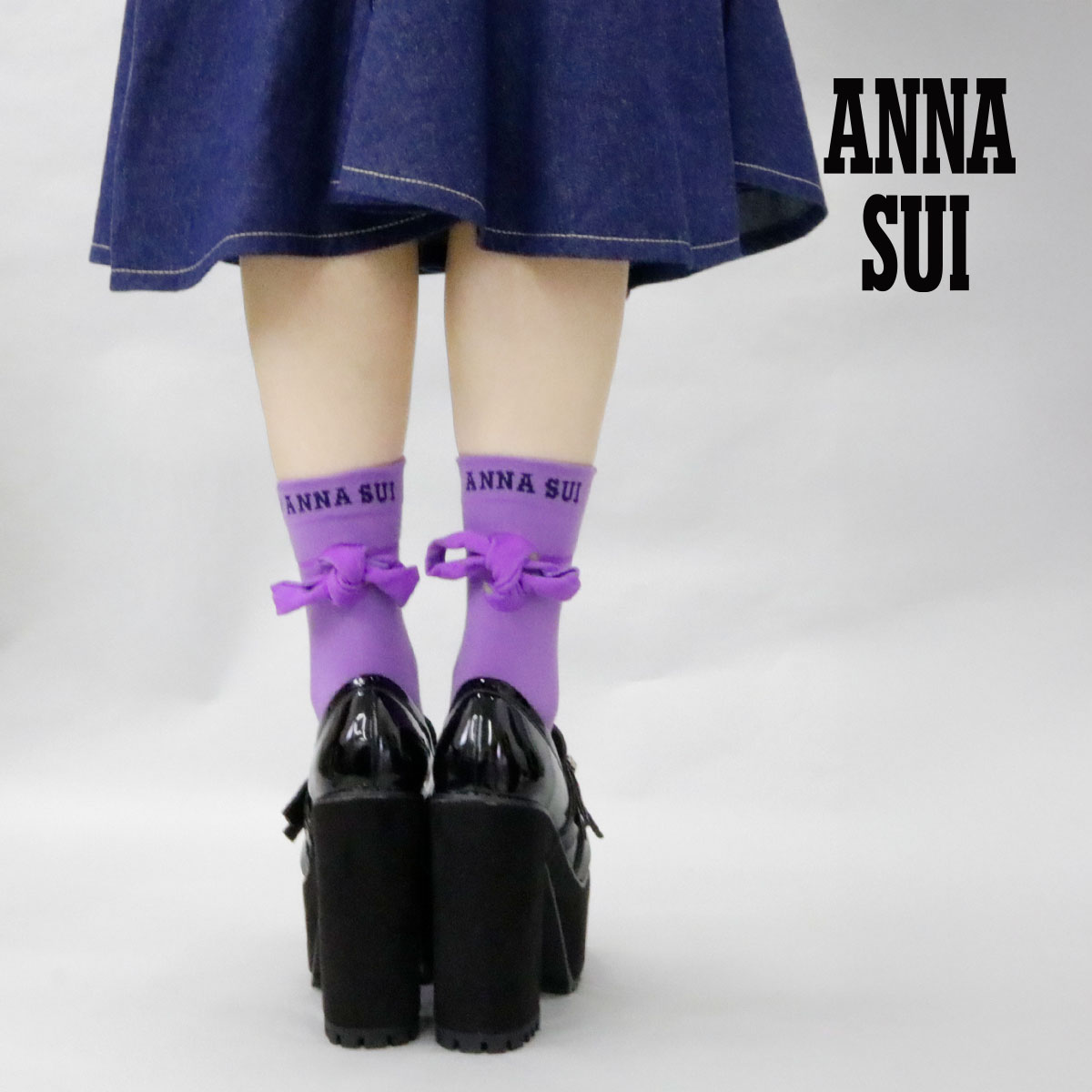 【ANNA SUI(アナスイ)】 靴下 無地 ワンポイント リボン クルー丈 日本製(3136-406)