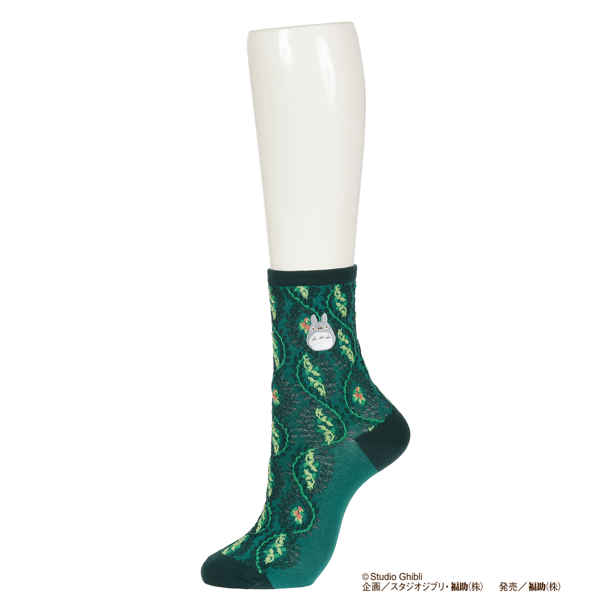大人気スタジオ・ジブリのとなりのトトロのクルー丈ソックスです。鮮やかなグリーンにトトロのワンポイント刺繍が可愛らしい一足です。