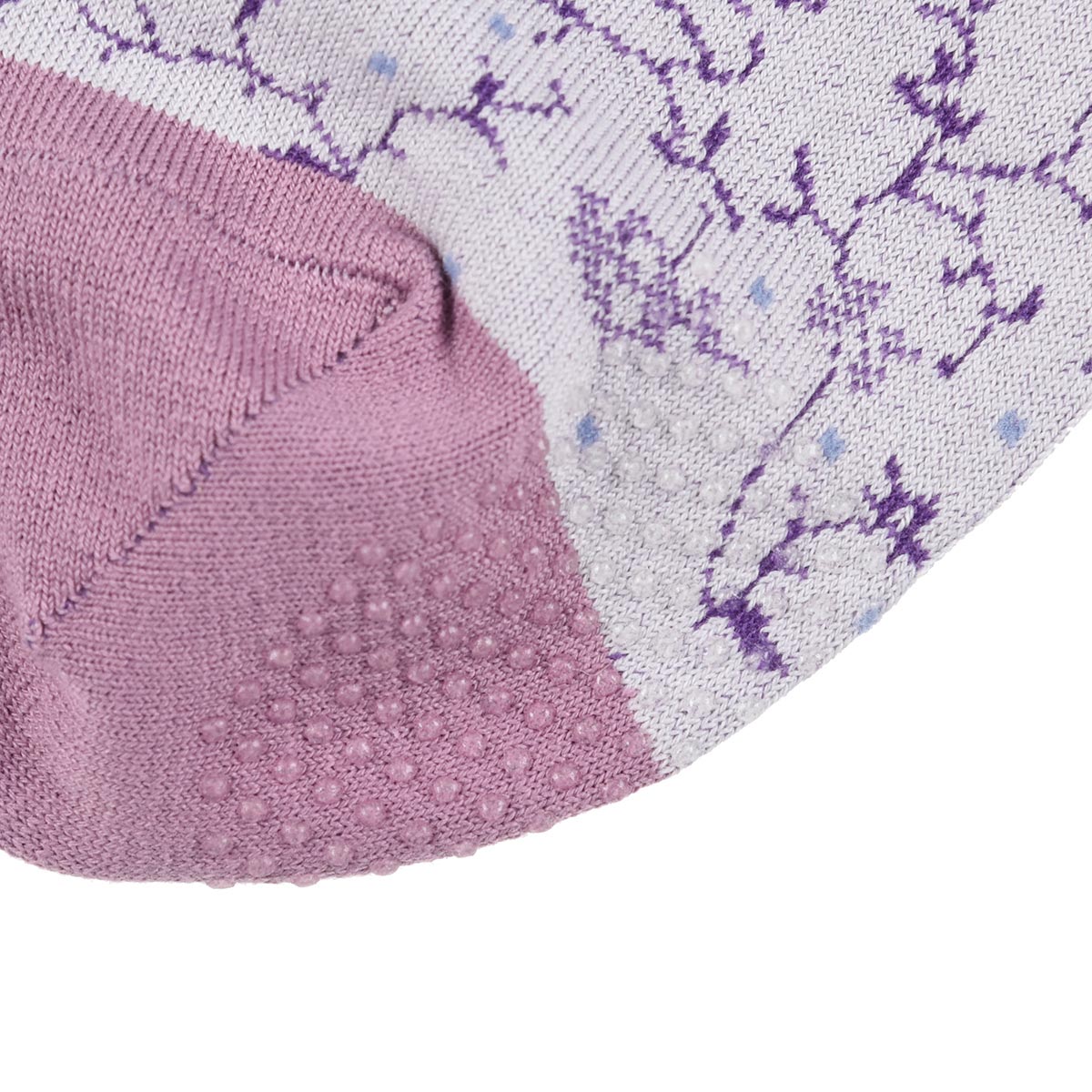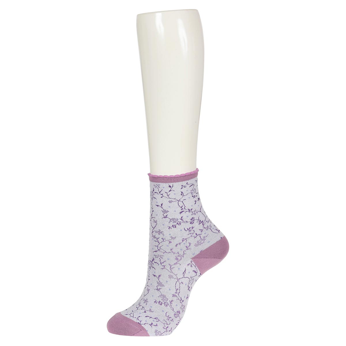 ハナエモリの人気スペック(規格)のゆったりらくらくのハイゲージソックス。ブーケを想起させる繊細な柄出しがかわいらしいです。通常の編み機よりも大きい釜を用いることで、全体的にゆったりとさせ、履き口にはゴムを使用せず、ポリウレタンにすることで気になる履き口のきつさも軽減しています。