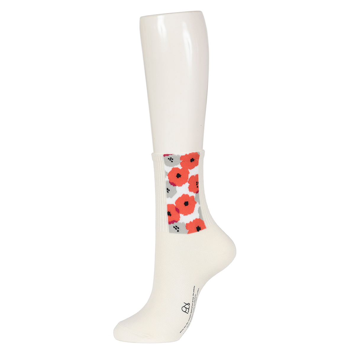 【Wpc.Patterns】 靴下 ピオニ柄 クルー丈 底転写プリント 吸水速乾加工(3105-01P)