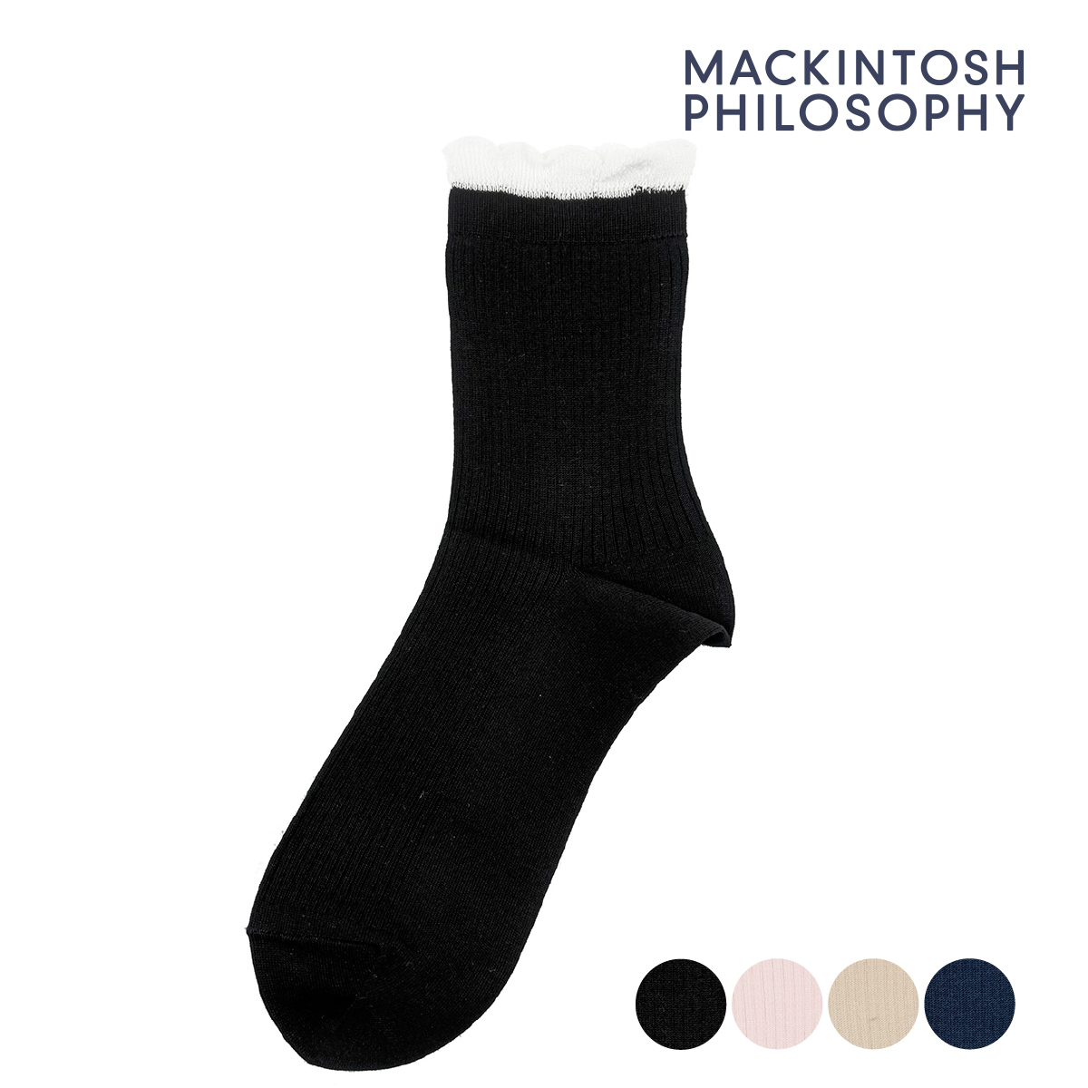 【MACKINTOSH PHILOSOPHY(マッキントッシュフィロソフィー)】 靴下 無地 リブ 足底転写 クルー丈 フリル (3107-402)