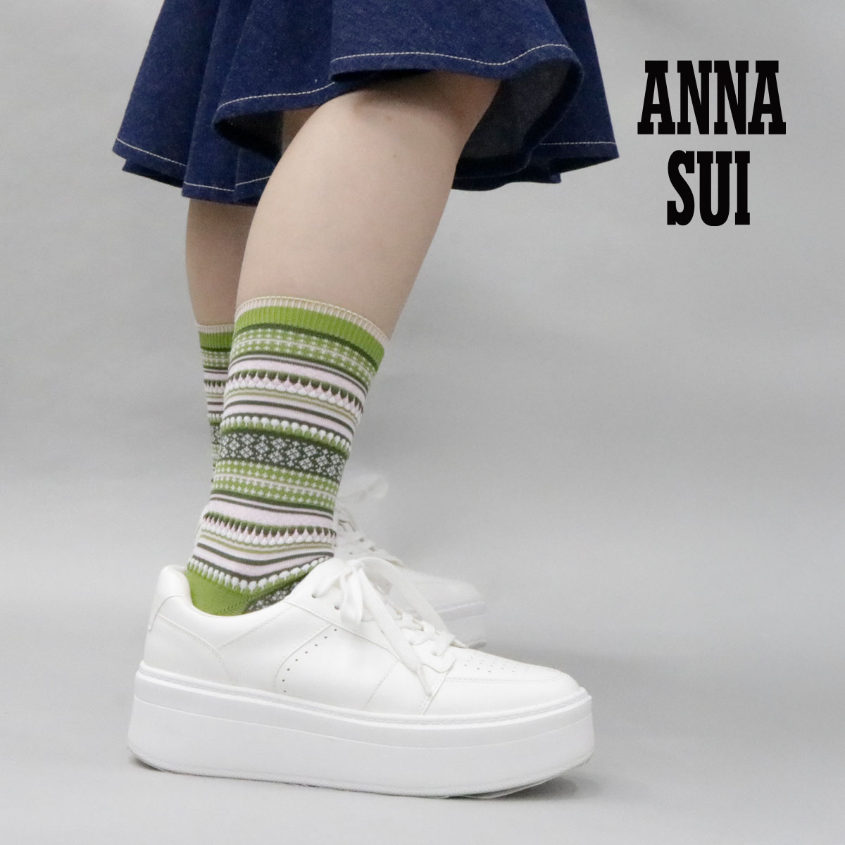 【ANNA SUI(アナスイ)】 靴下 フェアアイル柄 クルー丈 生地厚め 日本製(3136-401)