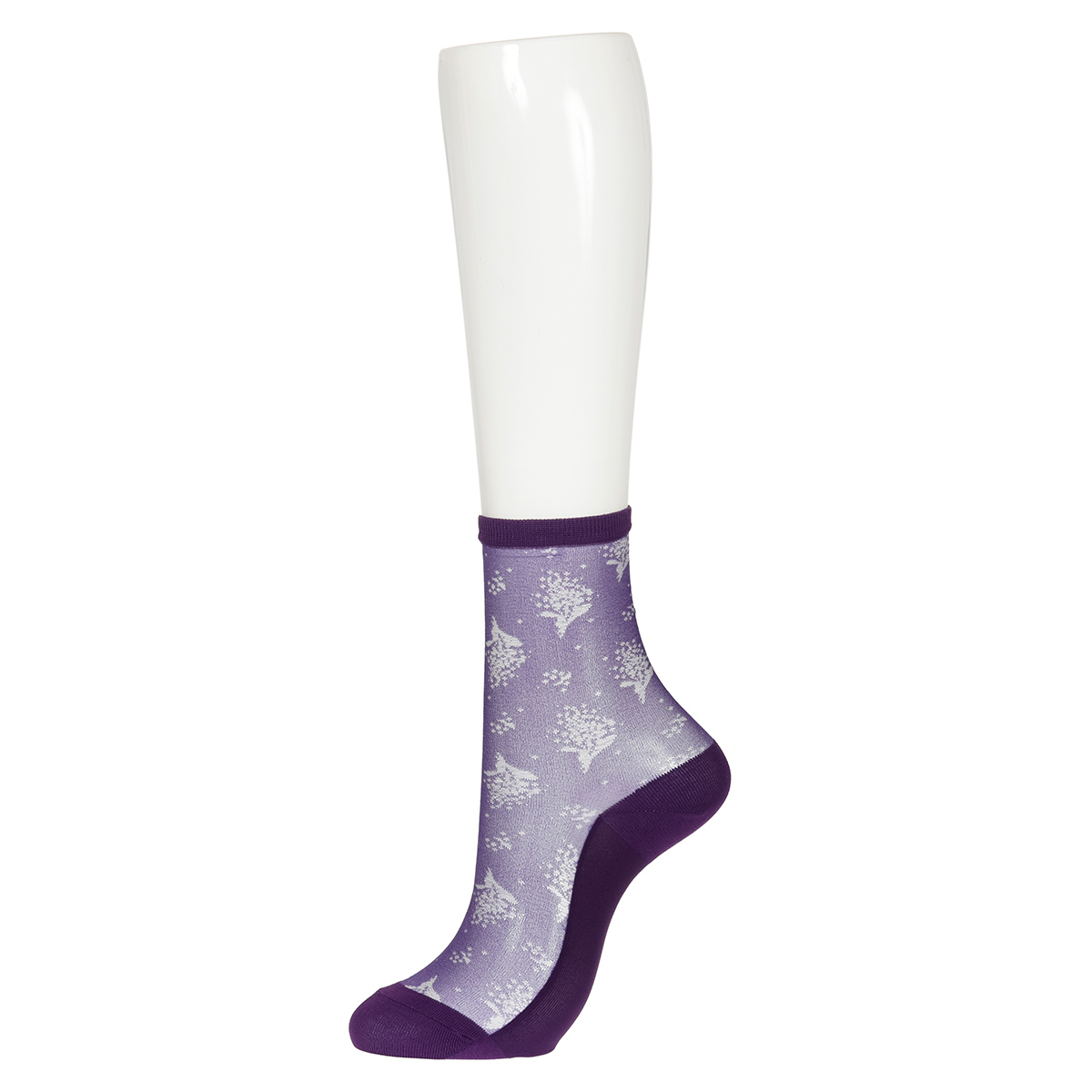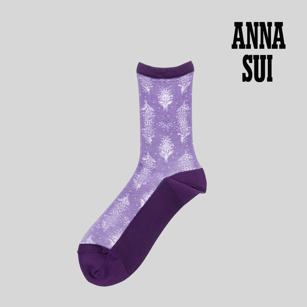 【ANNA SUI(アナスイ)】 靴下 ボタニカル柄 クルー丈 テグス シアー素材 日本製(3136-402)