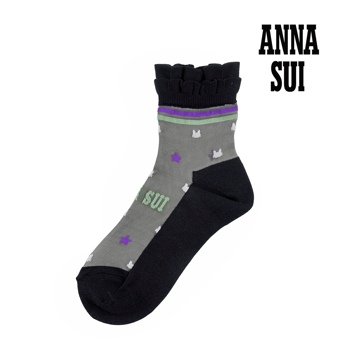 【ANNA SUI(アナスイ)】 靴下 ドット柄 ロゴ ワンポイント クルー丈 フリル 日本製(3136-411)