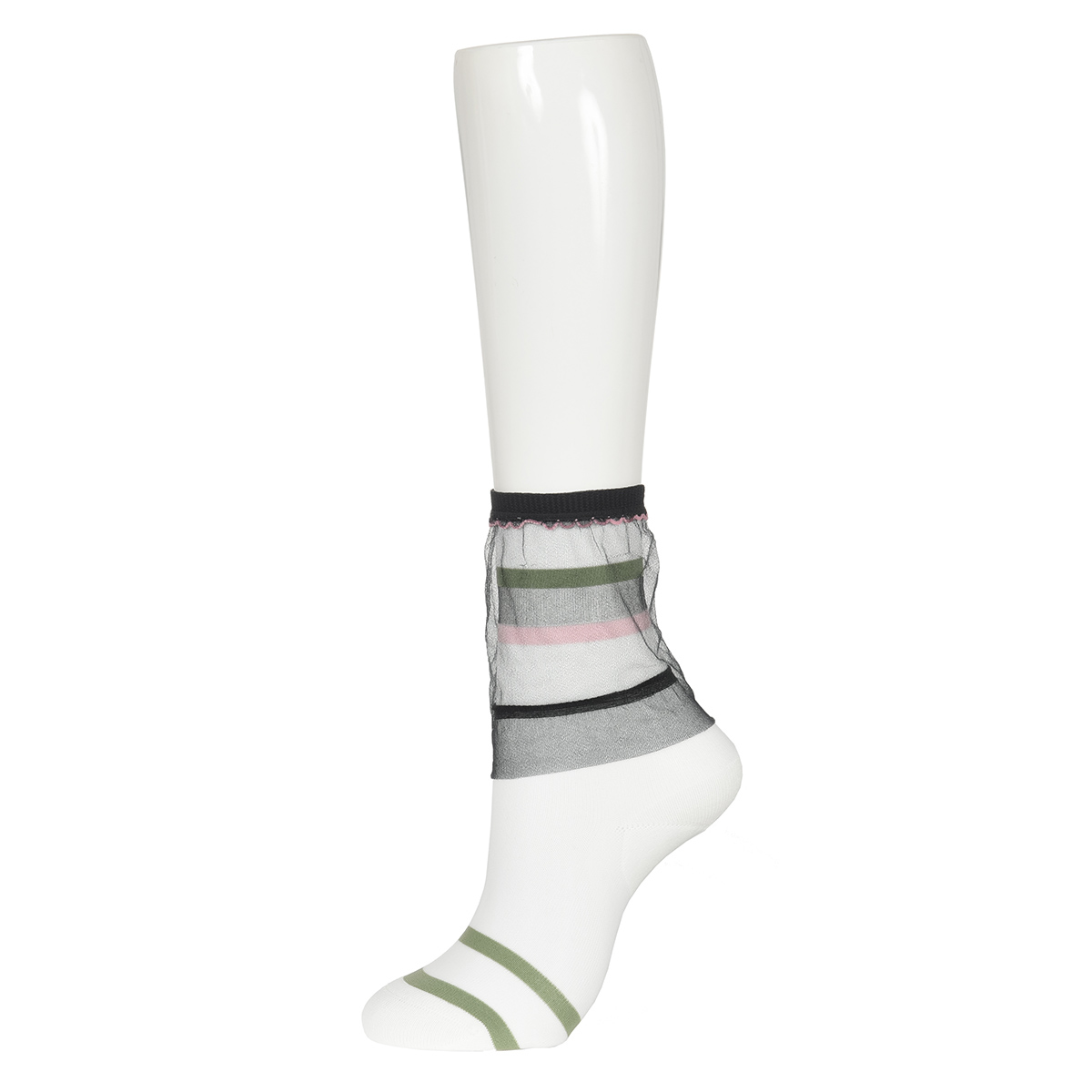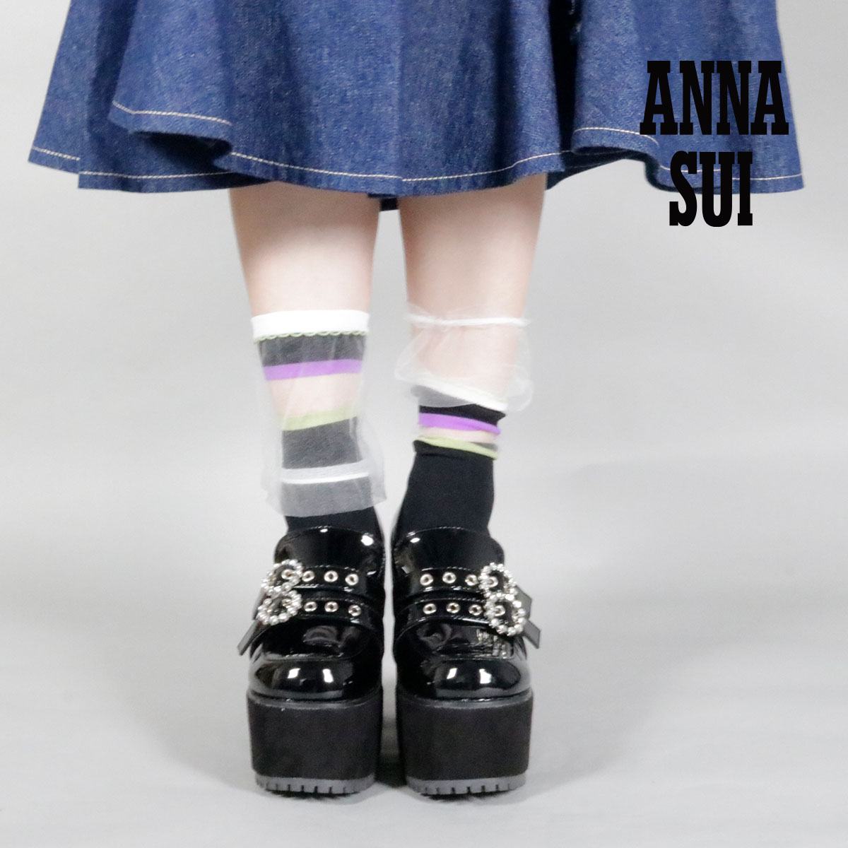 【ANNA SUI(アナスイ)】 靴下 マルチボーダー クルー丈 チュール素材 日本製(3136-413)