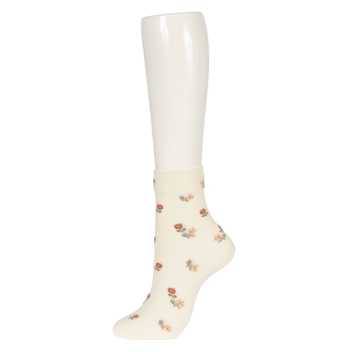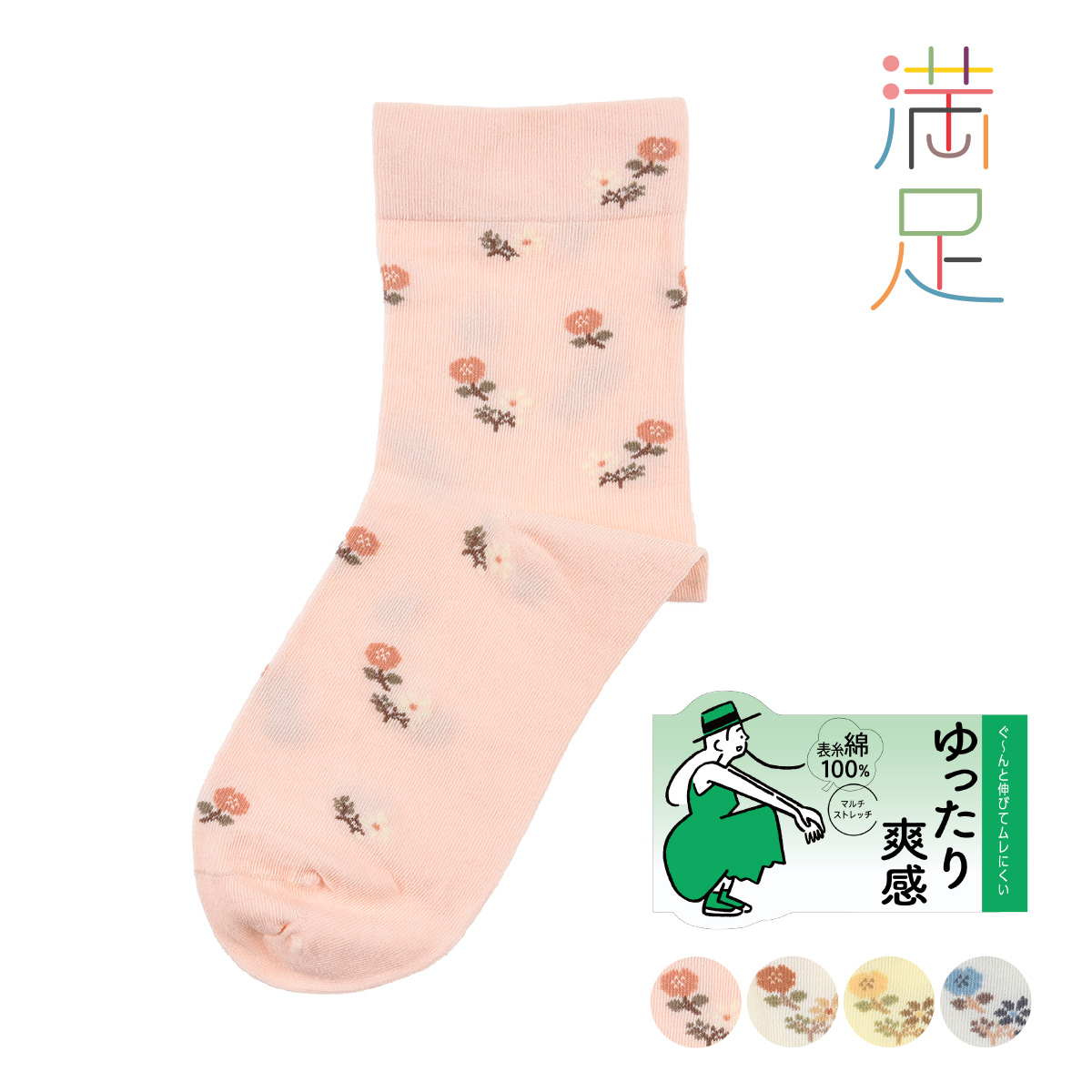 【満足(マンゾク) : ゆったり爽感】 靴下 小花柄 クルー丈 表糸綿100% 天然素材 締め付けにくい(3145-32P)