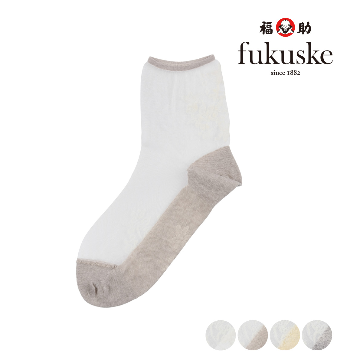 【fukuske(フクスケ) : The spirit of mottainai】 靴下 花柄 クルー丈 テグス シアー素材 (3163-474)