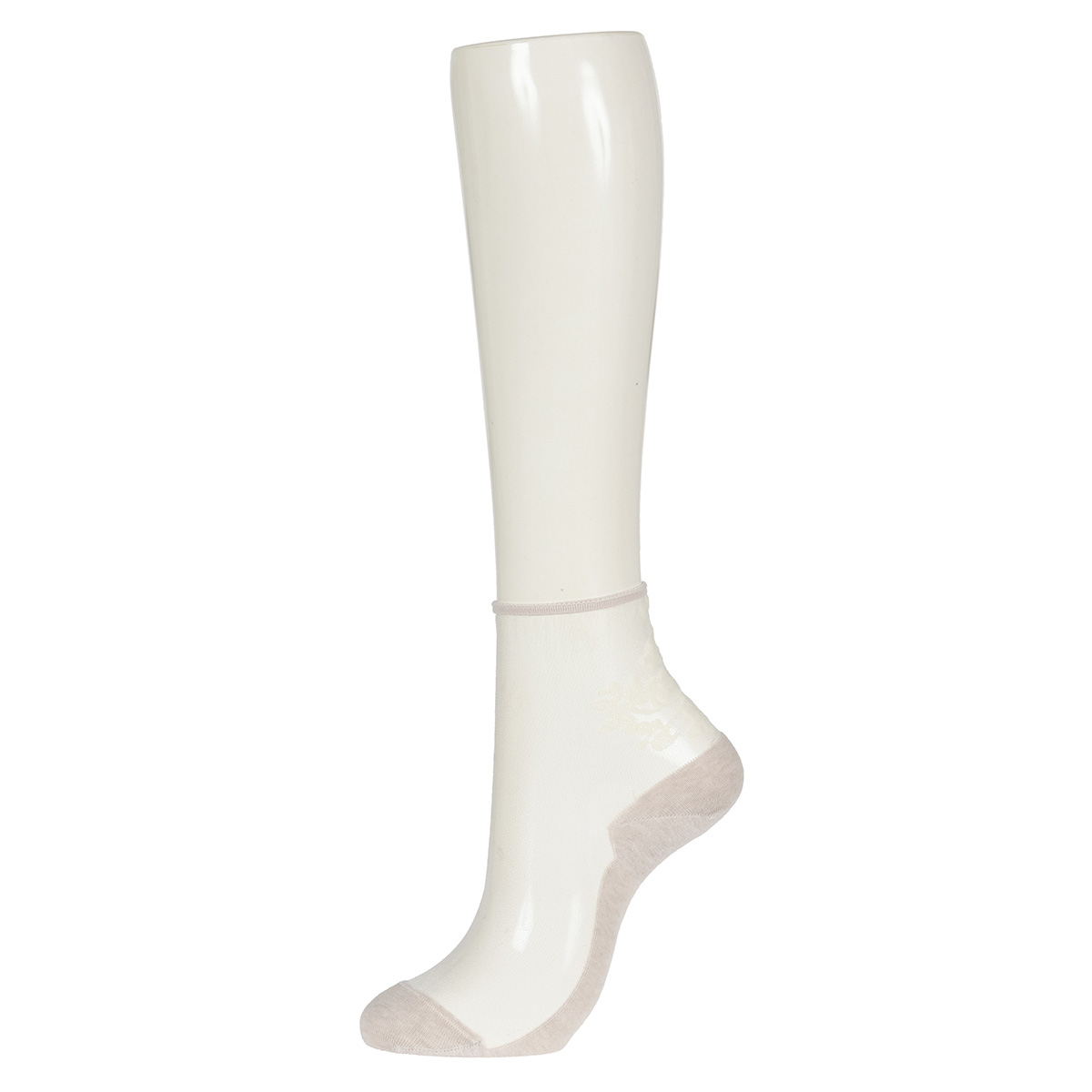 繊細なテグスにボタニカルなデザインが映えるシアーソックスです。涼しげで春夏のコーデに抜け感を出してくれるナチュラルなデザインの一足です。