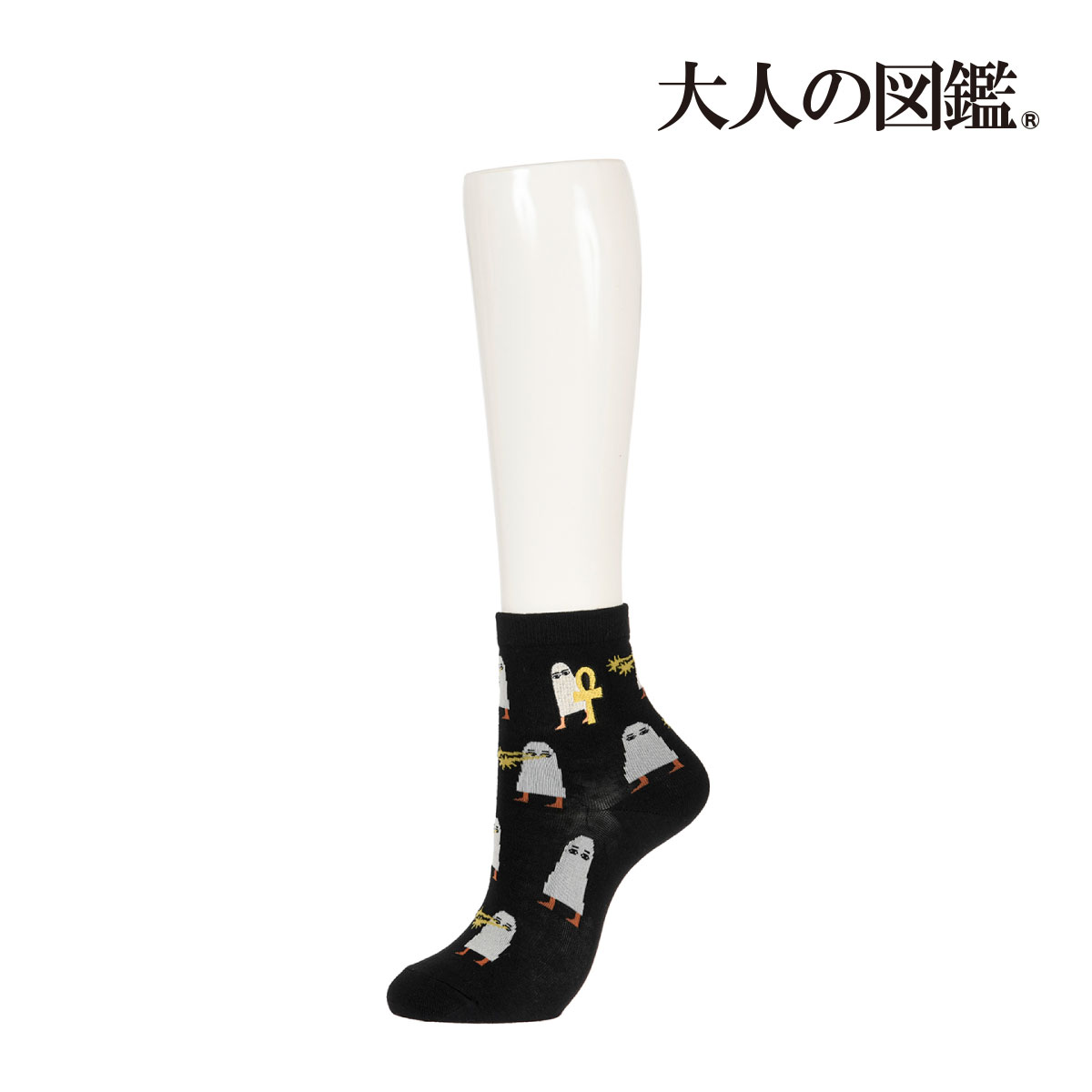 【大人の図鑑】 靴下 メジェド アンク 総柄 クルー丈 つま先かかと補強(3182-05P)