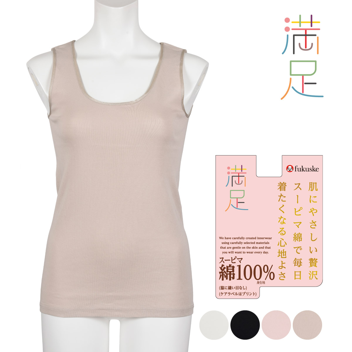 関連キーワードfukusuke fukuske 福助 ふくすけ フクスケ レディースインナー レディース肌着 女性用インナー 女性用肌着 婦人肌着 ピマ綿 タンクトップ 綿100% 肌に優しい インナー 敏感肌 高品質 コットン 脇に縫い目なし タグなし プリントラベル 透け防止 低刺激 下着 定番