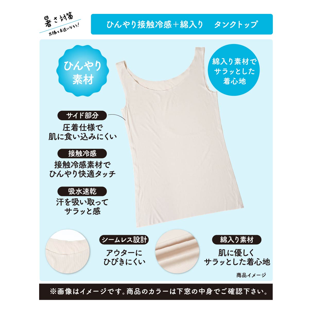 特徴・袖なし・無地・天然素材・接触冷感・ケアネーム転写プリント