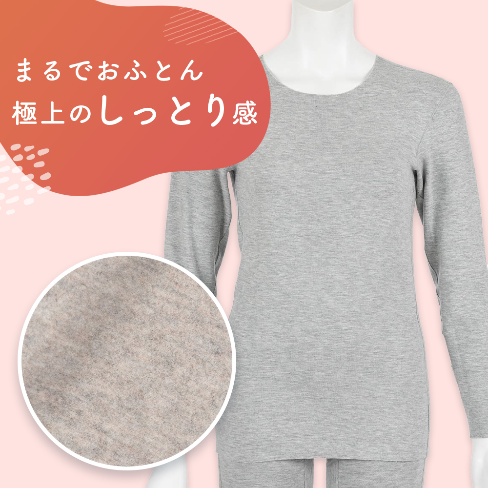 【満足:美温活】 インナーシャツ おふとん心地 無地 9分袖 起毛素材(37-4106G)