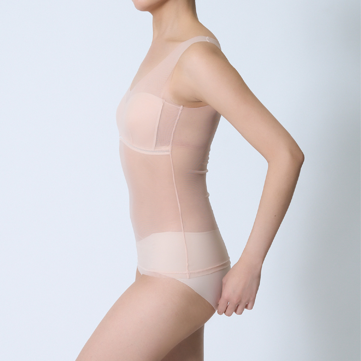 特徴・袖なし・無地・シアー素材・ストレッチメッシュテープ ノンワイヤー・パワーネット