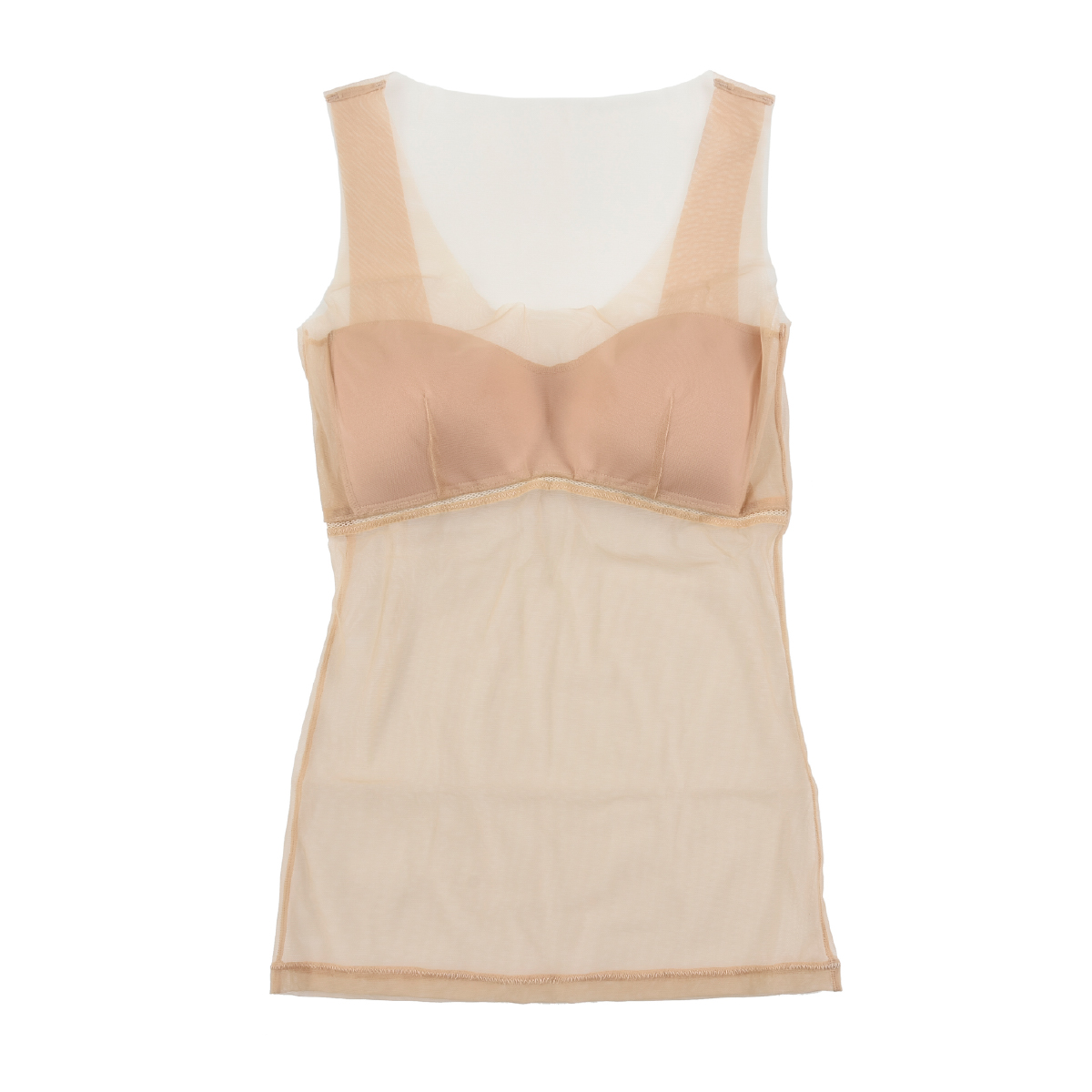【fukuske FUN(フクスケファン)】 美カップ付きタンクトップ 無地 袖なし シアー素材 ストレッチメッシュテープ ノンワイヤー レタッチ効果(14-0008)