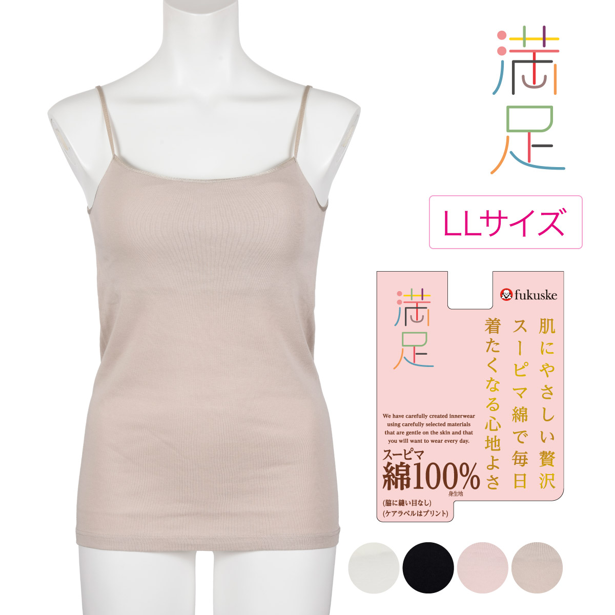 【満足(マンゾク)】 カップ付きキャミソール 無地 袖なし スーピマ綿100% タグなし 転写プリント 脇に縫い目なし LLサイズ(37-1001)