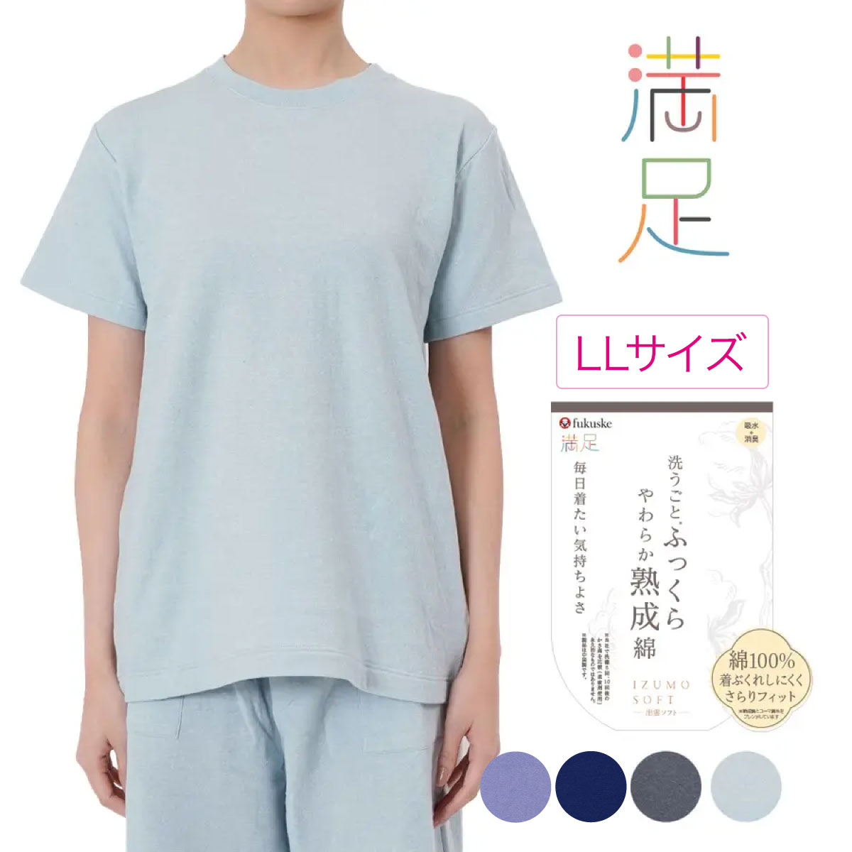 【満足(マンゾク)】 ルームウェア 無地 半袖Tシャツ 綿100% 接結ガーゼ 吸水 チクチクしない(37P2592)