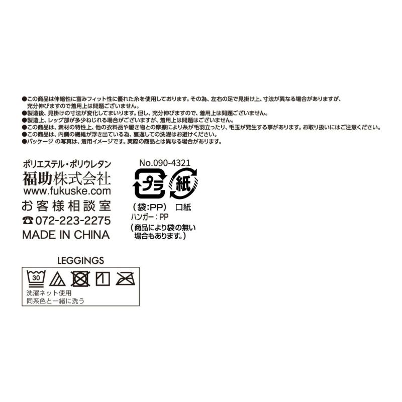 【デイリー満足】 レギンス 無地 10分丈 前後長マチ付き(090-4331)