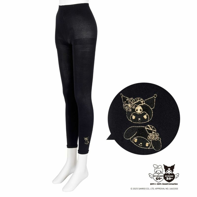 マイメロディ50周年&クロミ20周年!ANNA SUIと夢のコラボレーションアイテムが登場!マイメロディは50周年、クロミは20周年という節目の年を記念し、ANNA SUIとのスペシャルなコラボレーションアイテムが発売されます。左足首の繊細で華やかなゴールド刺繍が、大人可愛いアクセントのレギンス。程よい厚みで、年中快適に履ける一足です。