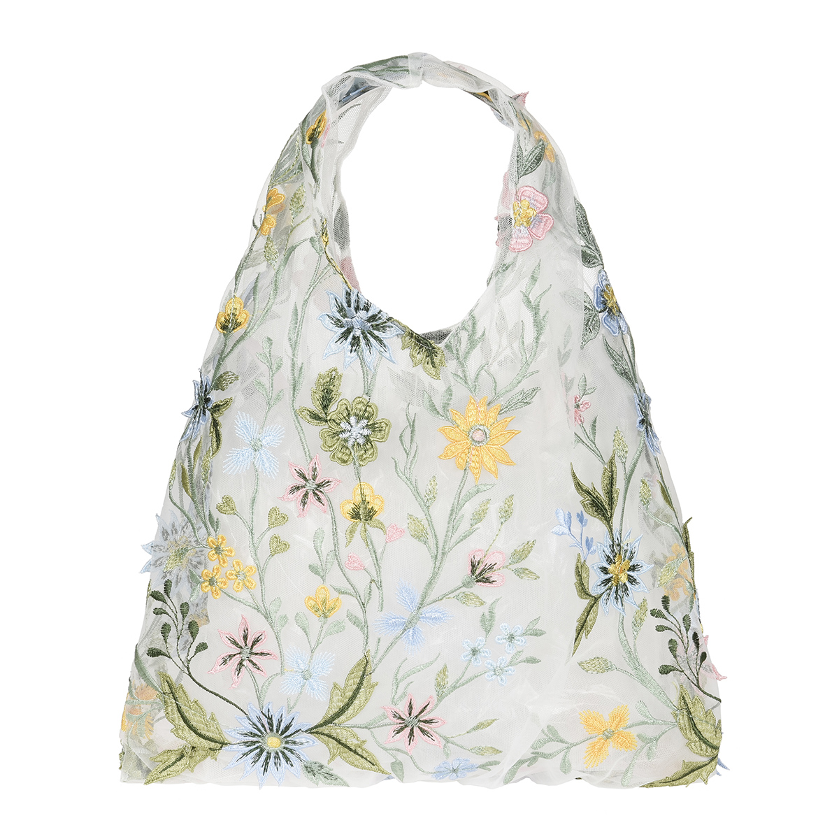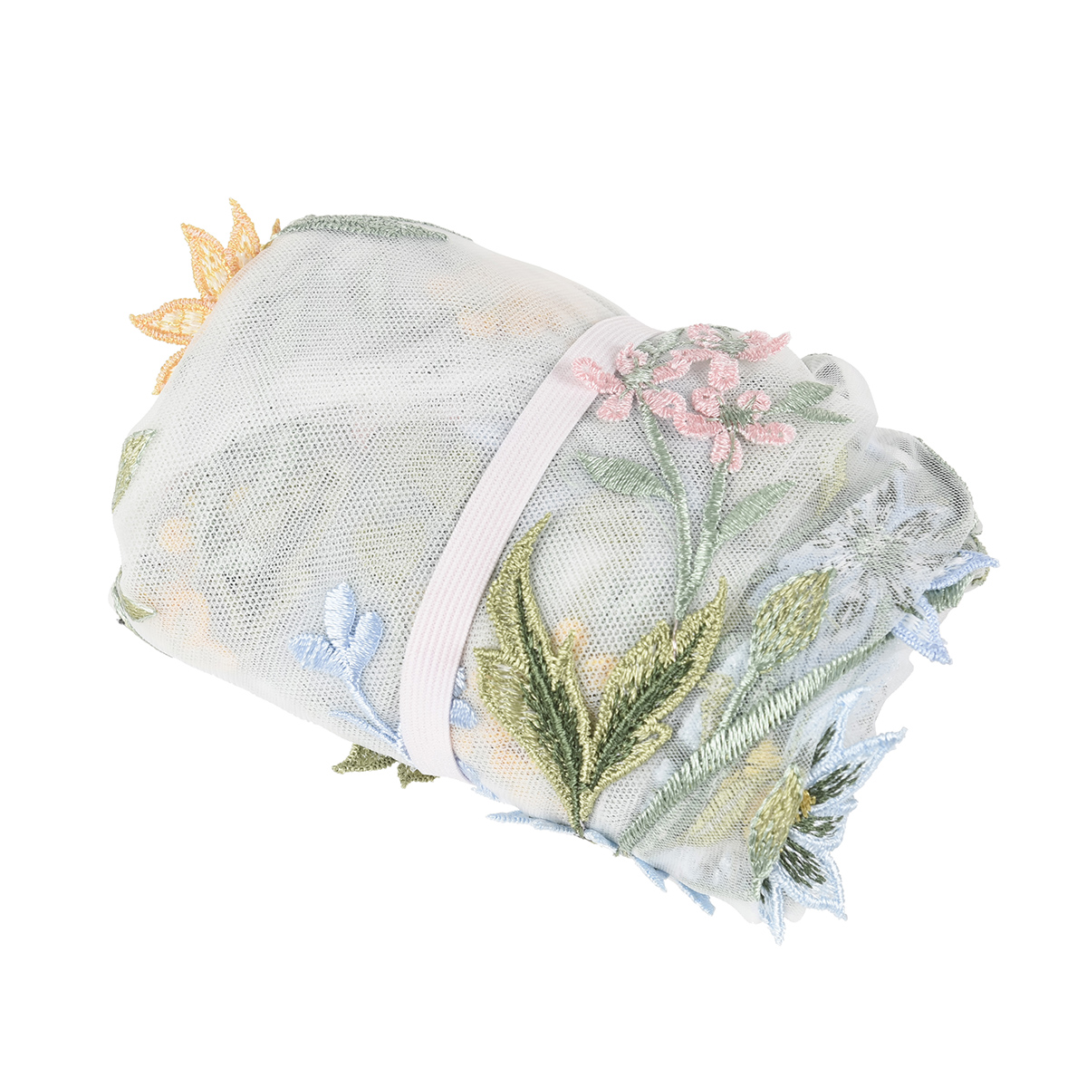 「.fukuske」が提案する「ペールフラワーチュールバッグ」は、繊細なチュール素材と淡い花柄(ペールフラワー)が特徴の、軽やかで上品なバッグです。本体には、透け感のある柔らかなチュール生地を使用し、その上に優しく淡い色合いのフラワーモチーフが刺繍されています。この繊細なデザインが、持つ人のスタイルをエレガントで優しい雰囲気に彩ります。チュール素材ならではの非常に軽い持ち心地で、エコバッグとしてはもちろん、サブバッグやメインバッグとしても活躍します。コンパクトに折りたためるものや、透け感を活かしてあえて中身を見せる「見せる収納」として使うなど、幅広い用途でお使いいただけます。普段使いからちょっとしたお出かけ、ギフトなどにも最適な、実用性とデザイン性を兼ね備えたアイテムです。