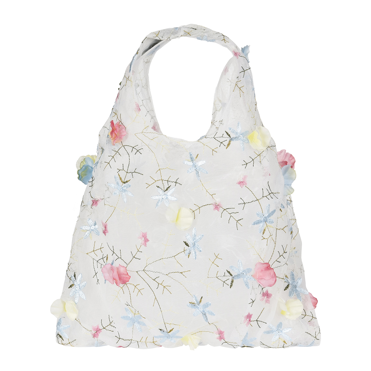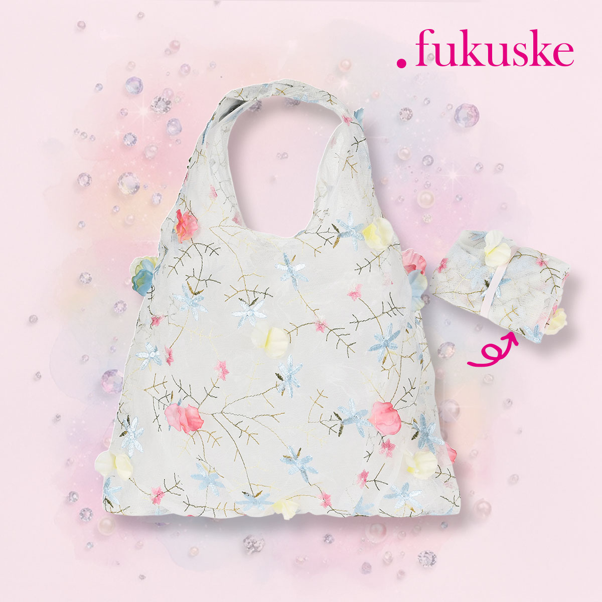 【. fukuske(ドットフクスケ)】 バッグ 3Dフラワー柄 チュール素材 (9330-301)