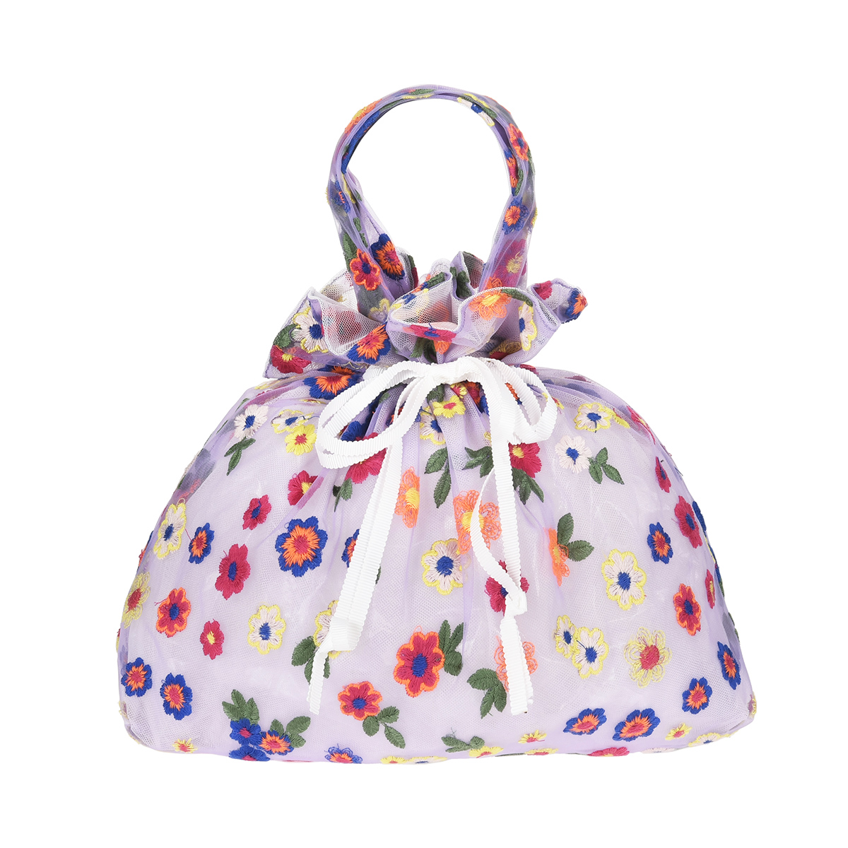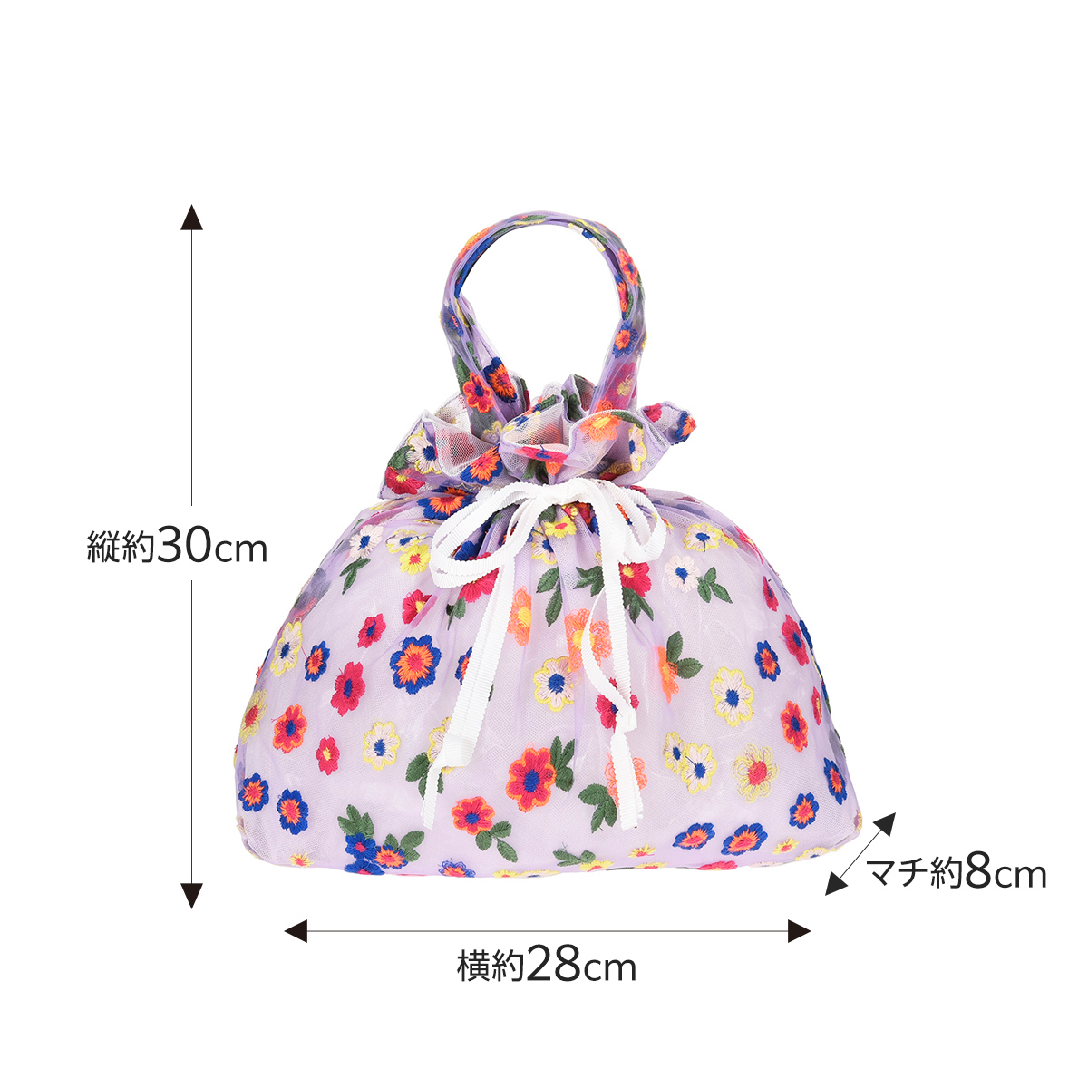特徴・巾着タイプ・カラフルフラワー柄・チュール素材