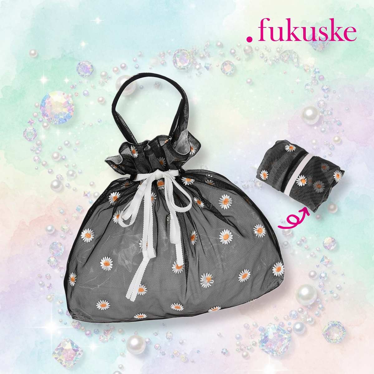 【. fukuske(ドットフクスケ)】 バッグ マーガレット柄 巾着タイプ チュール素材 (9330-307)