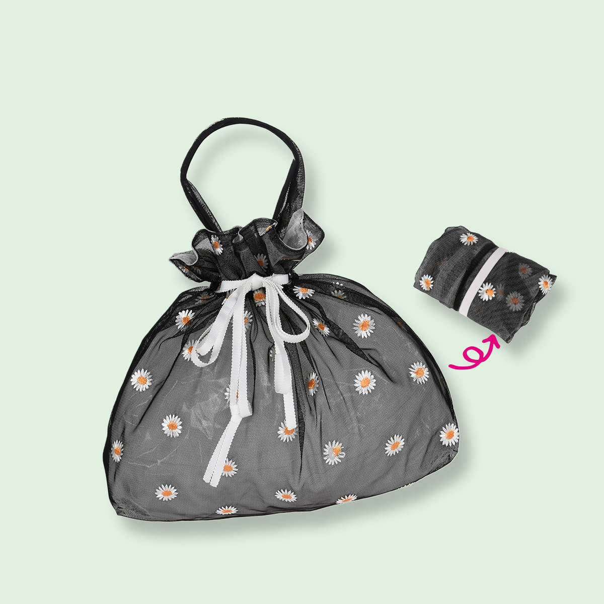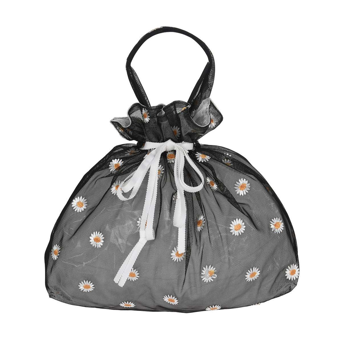 特徴・巾着タイプ・マーガレット柄・チュール素材