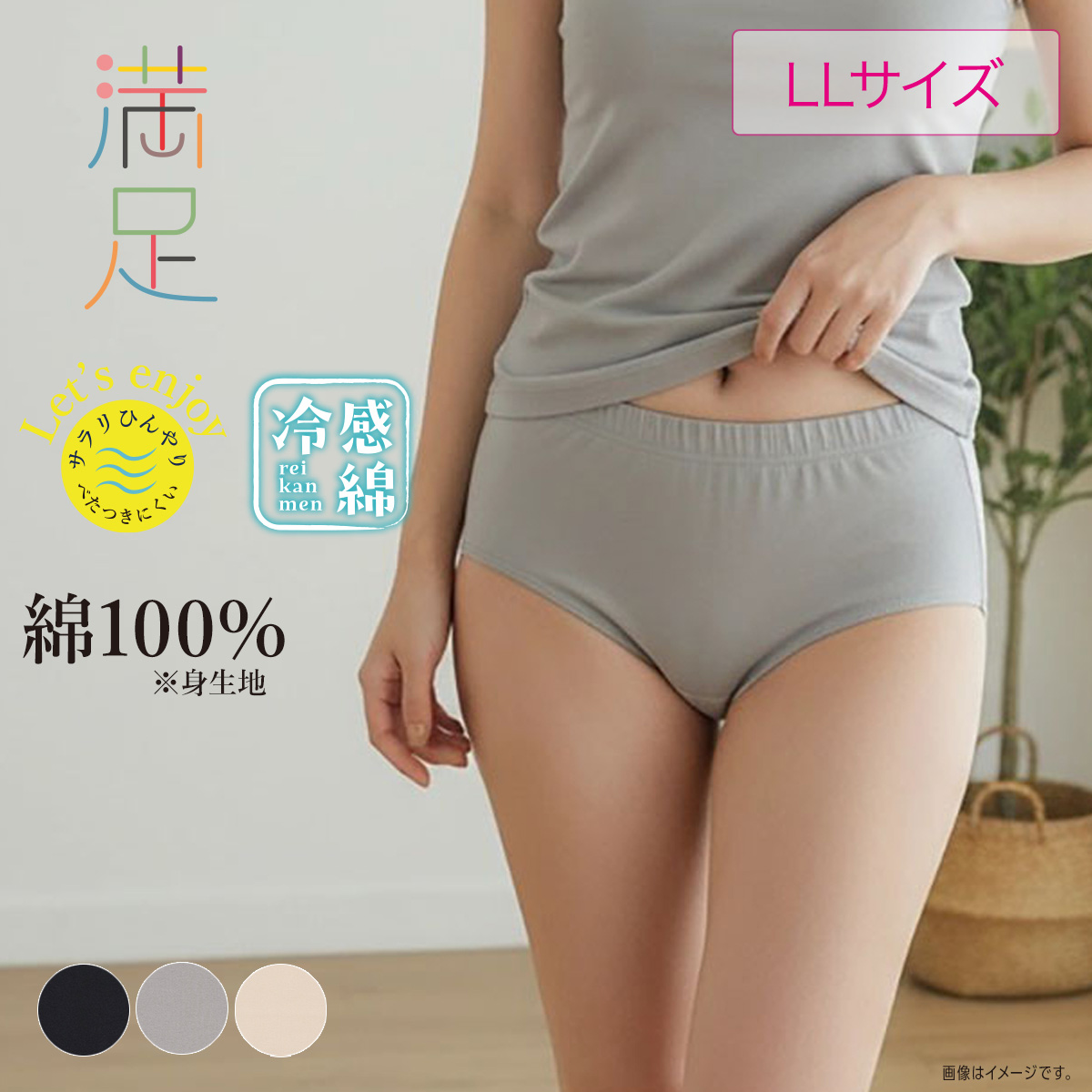 【満足(マンゾク)】 ショーツ 無地 スタンダードタイプ 冷感綿100% ひんやり ベタつきにくい LLサイズ(37-2111)