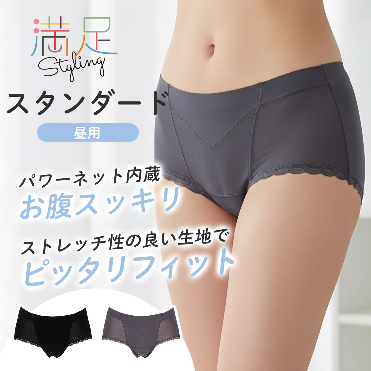 【満足(マンゾク) : シュッとサニタリー】 サニタリショーツ 無地 スタンダードタイプ(昼用) マチ部分抗菌 お腹部分パワーネット内蔵(37-4506)