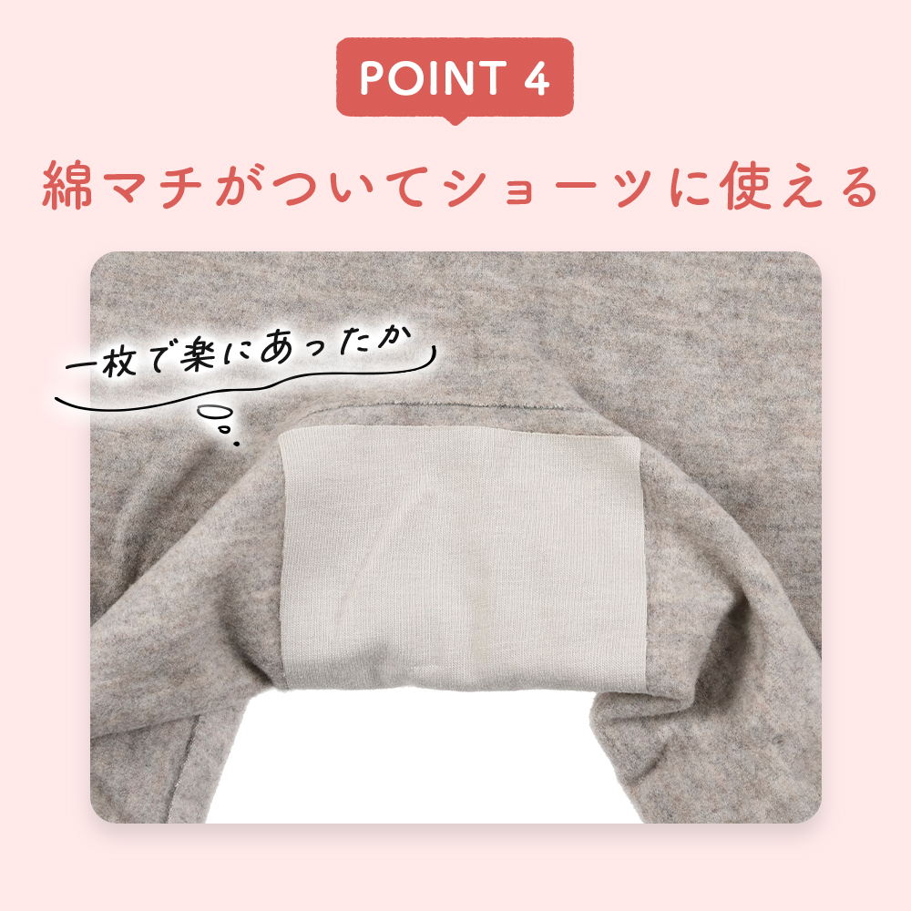 特徴・5分丈・無地・マチ肌側綿混素材 肌側起毛・あったか フィット感・シームレス設計