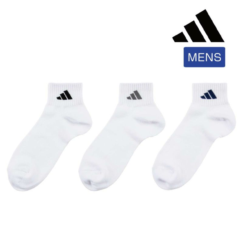 【adidas(アディダス)】3足組 靴下 DEO 無地 ロゴ ショート丈 つま先かかと補強(06087W)