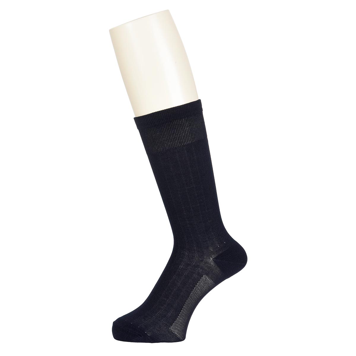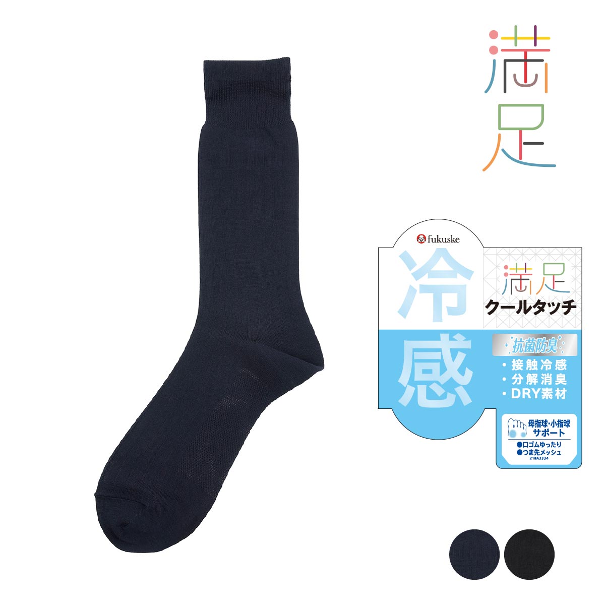 【満足(マンゾク) : 冷感】 靴下 無地 疑似太リブ クルー丈 DRY素材 足底メッシュ 抗菌防臭(33987W)