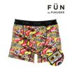 アメリカンテイスト満載な前閉じの総柄ボクサーブリーフです。伸縮性のあるベア天竺素材を使用しており、ストレッチのきいた快適なフィット感です。POPで個性的なデザインなので、おしゃれなインナーアイテムとして、プレゼントにもおすすめです。