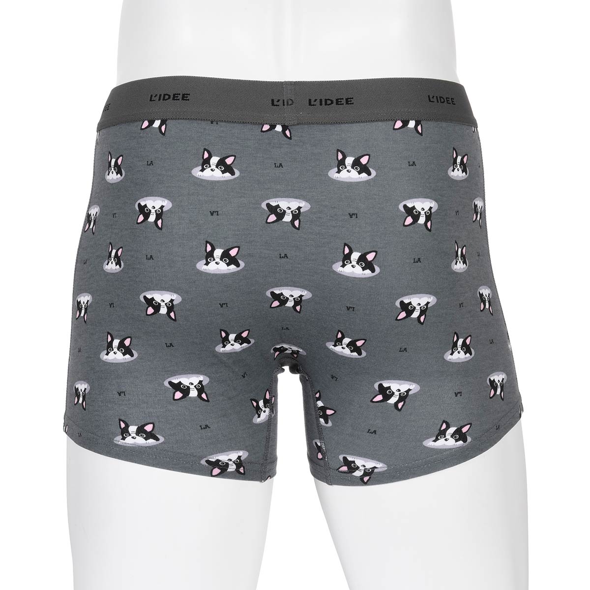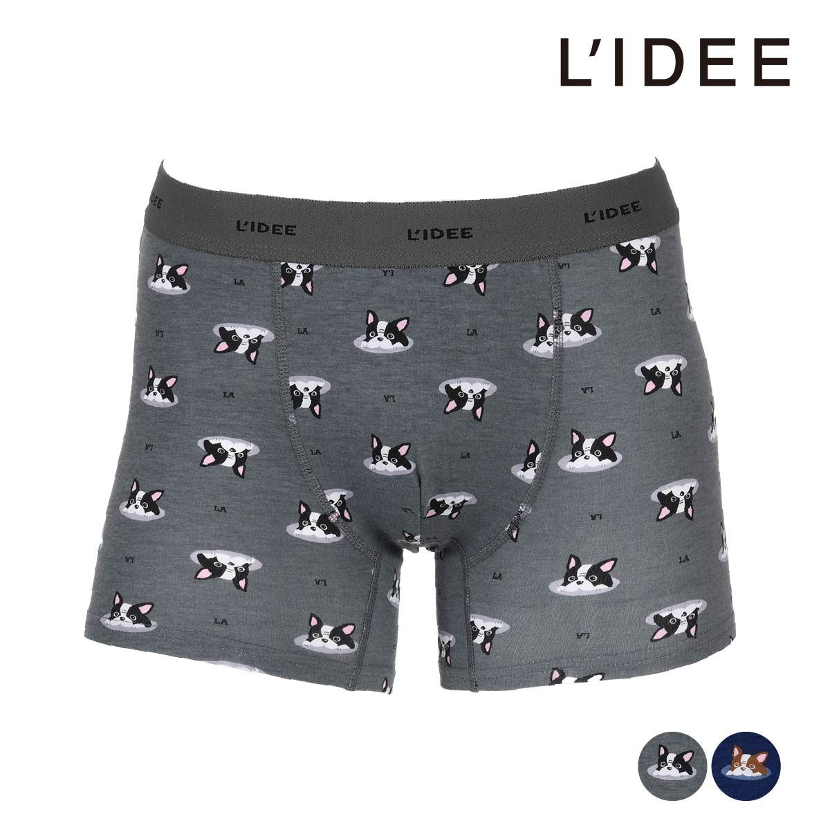 日常に「可愛らしさ」と「快適さ」をプラスする、犬のプリントが目を引くボクサーブリーフです。素材には、伸縮性に優れ、肌触りがなめらかなベア天竺生地を採用。身体の動きに合わせて柔軟にフィットするため、ストレスフリーな履き心地を提供します。デザインは、ひょっこりと顔を出す愛らしい犬の総柄プリントが特徴です。シンプルながらも遊び心のあるデザインで、履くたびに気分を明るくしてくれます。仕様は使いやすい前閉じタイプで、フィット感を高める幅広のウエストゴムには、ブランド名「L'IDEE」のロゴが配されています。見えない部分にもこだわりを持ちたい方や、犬好きな方へのプレゼントにも最適な、快適さとユニークなデザインを兼ね備えた一枚です。