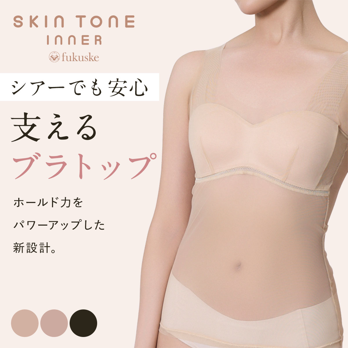 関連キーワードfukusuke fukuske 福助 ふくすけ フクスケ レディースインナー レディース肌着 女性用インナー 女性用肌着 婦人肌着 カップ付きタンクトップ 補正 脇肉スッキリ シームレス 響かない バストアップ ホールド力 肌綺麗に見える レタッチ効果 着痩せ 20代 30代 40代 美胸 メッシュテープ 涼しい スキントーン SKINTONE