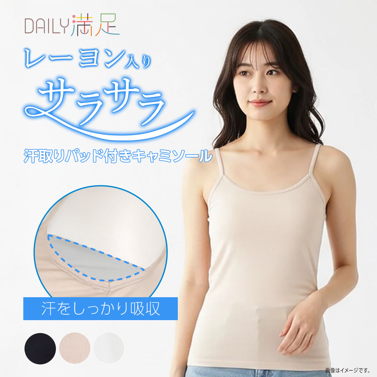 【デイリー満足】 キャミソール 無地 袖なし レーヨン素材 吸湿速乾 汗取りパッド付(37V2014)