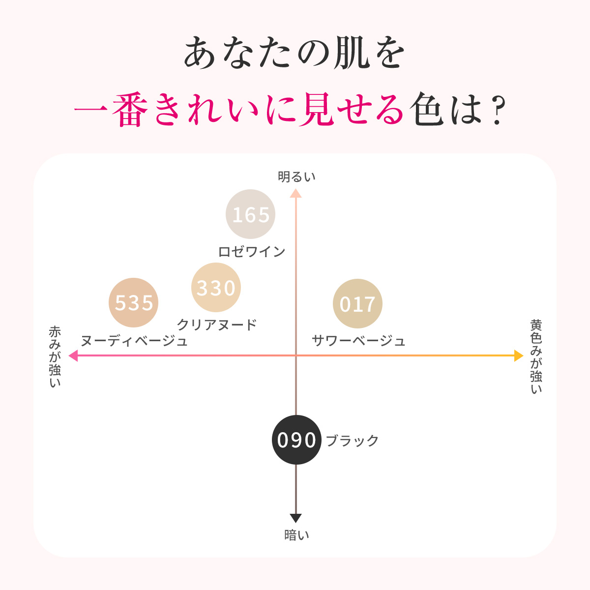 カラーサワーベージュ017,ブラック090,ロゼワイン165,クリアヌード330,ヌーディベージュ535