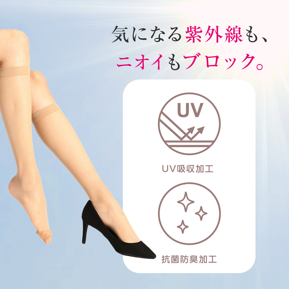特徴・ショート丈・無地・ゾッキ ノンラン設計・抗菌防臭・UV吸収加工