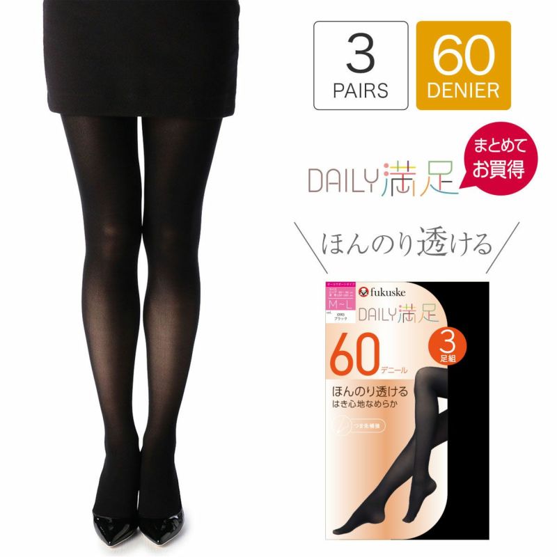 【デイリー満足】3足組 タイツ 無地 60デニール SCYゾッキ(790-1113)
