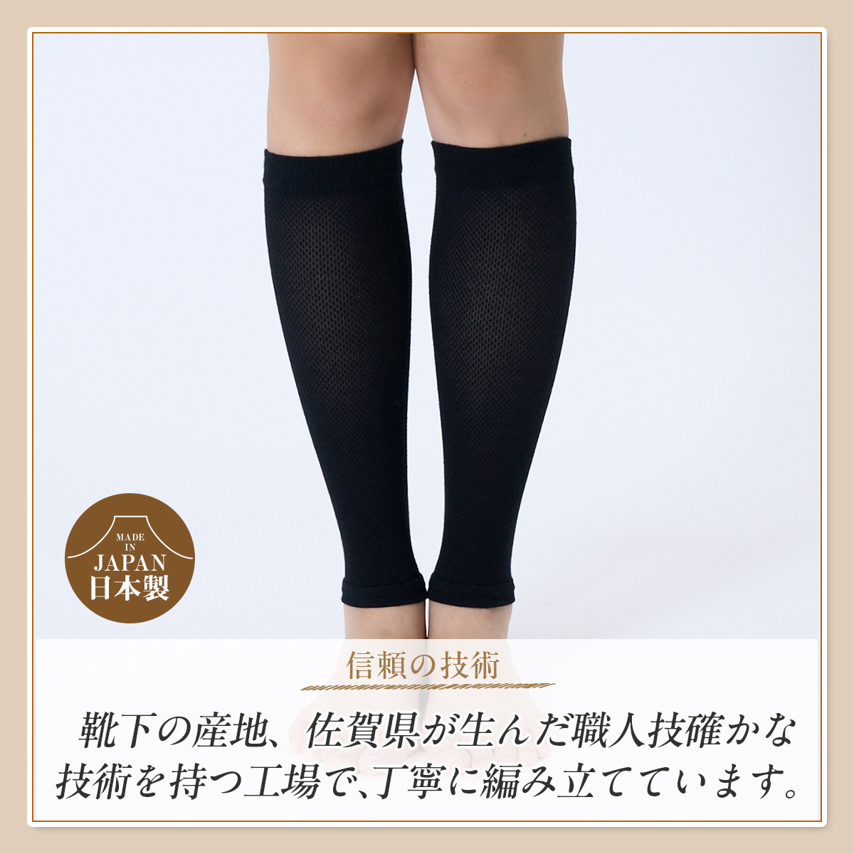 メッシュ地の着圧サポーターです。薄手のメッシュ地なので通気性を保ちながら脚をスッキリひきしめてくれます。