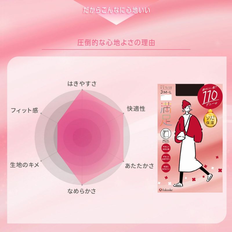 レディース 婦人 女性 フクスケ fukuske 静電気防止 消臭糸使用 つま先スルー オリジナルダブル保湿加工 発熱加工 満足: 毛玉になりにくい 無地 タイツ 110デニール しっとりダブル保湿 (740-7301)