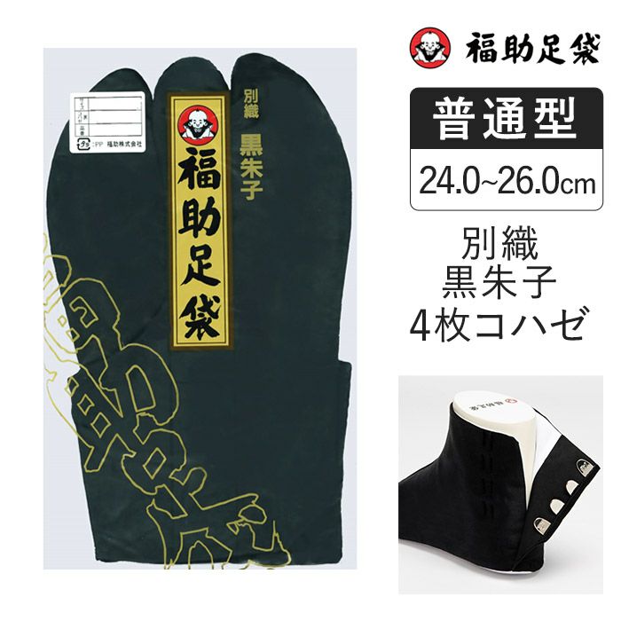 朱子織特有のなめらかで美しい光沢をもつ 福助足袋 別織黒朱子 サラシ裏 4枚コハゼ(24.0~26.0cm)