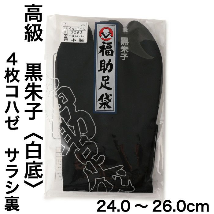 朱子織特有のなめらかで美しい光沢をもつ 福助足袋 高級黒朱子 4枚コハゼ(白底)(サラシ裏)(24.0~26.0cm)