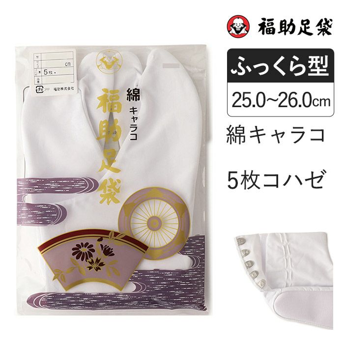 表地に高級エジプト綿別織生地を使用 福助足袋 綿キャラコ 5枚コハゼ サラシ裏 ふっくら型(25.0~26.0cm)